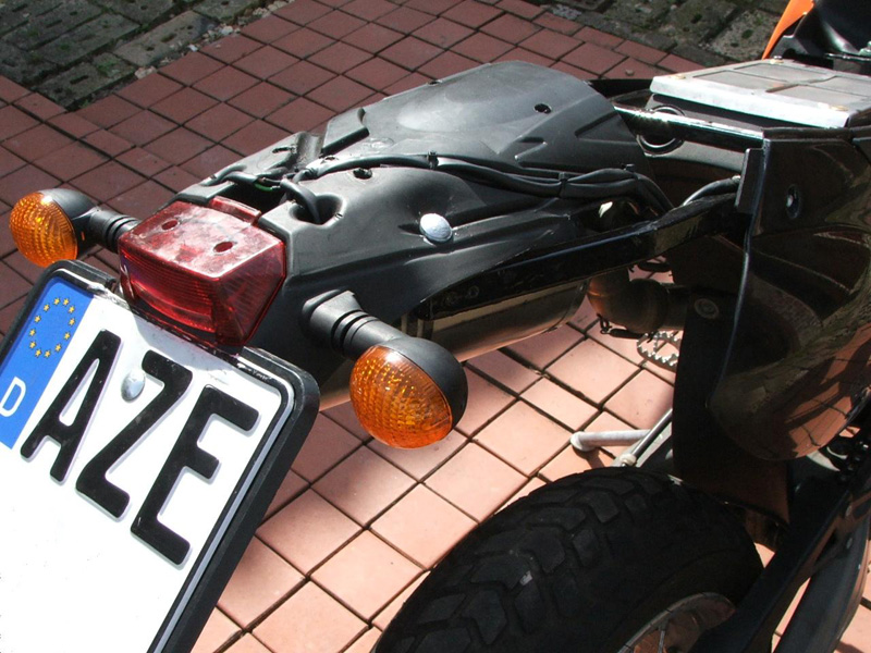 Das Rücklicht ist beim EXC - Kennzeichenträger integriert |