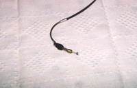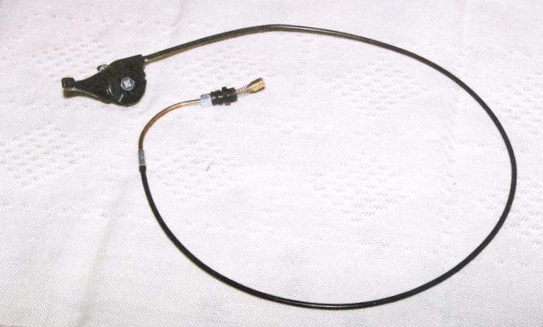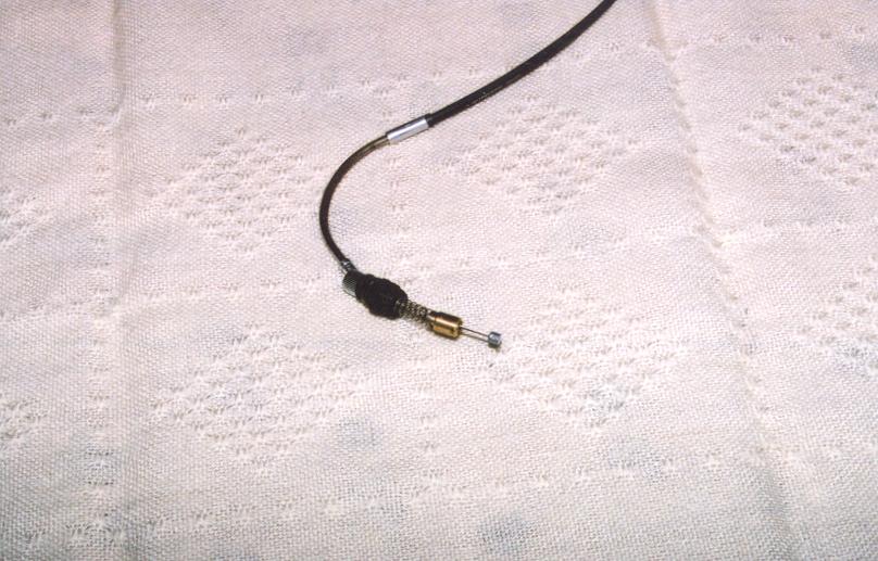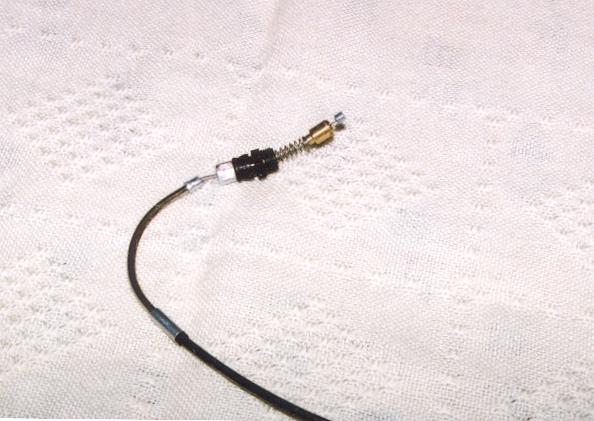 2.) Umbaubeschreibung Den Zugschalterknopf habe ich vom Chokehebel abgesägt. Durch das Messingstück habe ich ein Loch gebohrt. Dort habe ich den Bowdenzug durchgezogen. Den Bowdenzug habe ich aus den Pannenset von Louis. Vom Choke-Hebel müßt ihr die Originalfeder benutzen. In den Plastikeinsatz vom Choke-Hebel habe ich eine Einstellschraube von einer Fahrradgangschaltung eingesetzt.